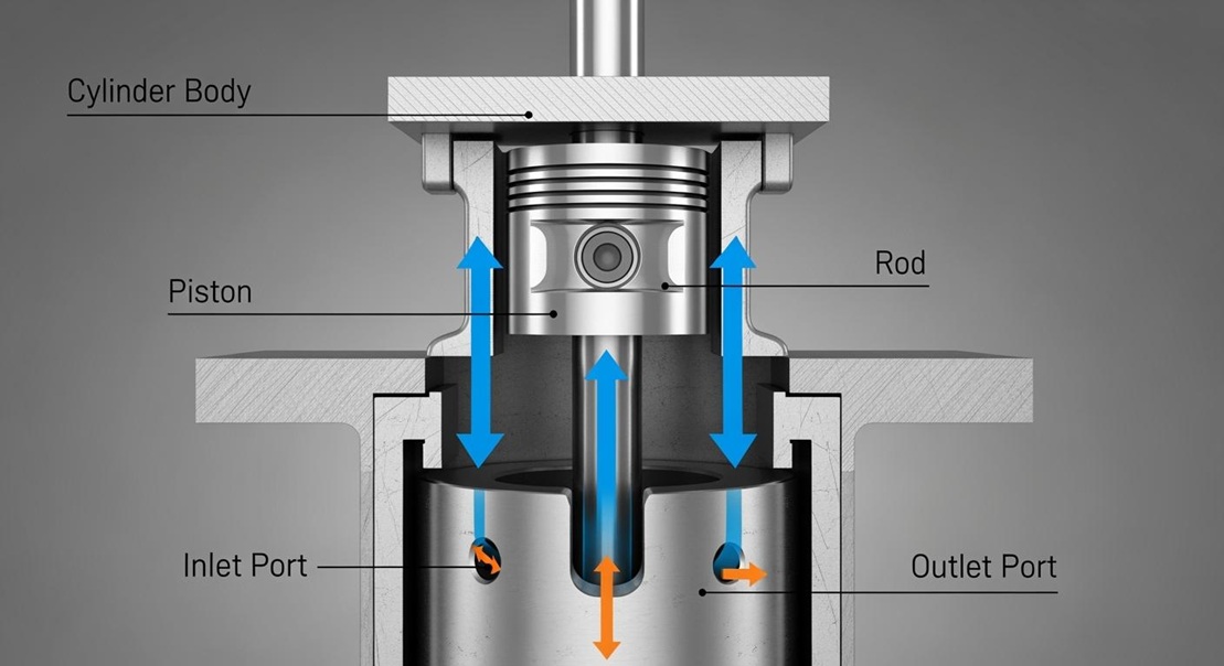 نصيحة: تعتمد طريقة حركة الأسطوانة على كمية الزيت والضغط المستخدمين. وتساعد الصمامات في التحكم في مسار الزيت، مما يتيح رفع أو خفض الأشياء بسلاسة.